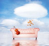Surrealistisch kunstwerk over muziek,de zee, vlinders,mooie luchten en een makkelijke bank,kortom...op sommige dagen alles wat ik nodig heb:)
