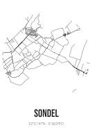 Zwart-witte landkaart, stratenplan of plattegrond van Sondel. Sondel is gelegen in de gemeente De Fryske Marren, provincie Fryslan. Op de stadskaart zijn alle openbare wegen in Sondel opgenomen. Verder is de kaart voorzien van de coördinaten van het centrum van Sondel.