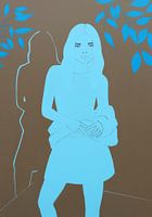 Een figuratief portret van een jonge vrouw. De naam is een verzinsel, de kunstenaar heeft hem verzonnen voor de figuur op het schilderij. De figuur is opgebouwd uit een paar streken, waardoor een beeld ontstaat als uit een tekenfilm. Links- en rechtsboven in de foto zijn blauwe bladeren te zien die de compositie omlijsten.