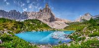 Het meer wordt als een kleine diamant omlijst door de Sorapis-groep, waarin de top Dito di Dio (Vinger van God) fier afsteekt.