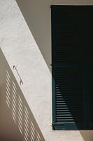 Dit fascinerende beeld, gekenmerkt door de scherpe contrasten tussen het zonlicht en de schaduw, vormde de inspiratie voor mijn foto. Mijn oog viel direct op het raamkozijn met de sierlijke Louvre-deur, wat onmiskenbaar een Spaans gevoel oproept. Tegen de witte muur wordt de schaduw van een hek met een opvallend grafisch patroon weergegeven, en dankzij het strijklicht komen zelfs de korrelige structuren van de muur prachtig tot hun recht.