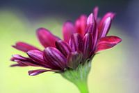 Een beeld van een spaanse margriet, vroeg in de morgen. De paarse bloemblaadjes zijn nog aan het ontwaken en begroeten de morgenzon. Een mooi moment om vast te leggen, straks zijn de bloemblaadjes helemaal open.