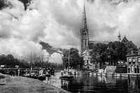 mooie zwart/wit fotobewerking van deze oude ansichtkaarten geeft deze sfeerbeelden een nieuw leven.