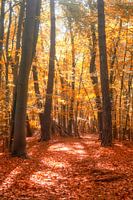 Mooi wandelpad in de bossen van het Spanderswoud in Hilversum, Nederland. De herfstkleuren komen extra goed uit door de warme zonnestralen die gelukkig veel aanwezig zijn in deze herfst 2018.