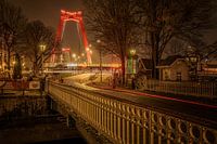 Spanjaardsbrug, met in het verlengde de rode Willemsbrug in Rotterdam.