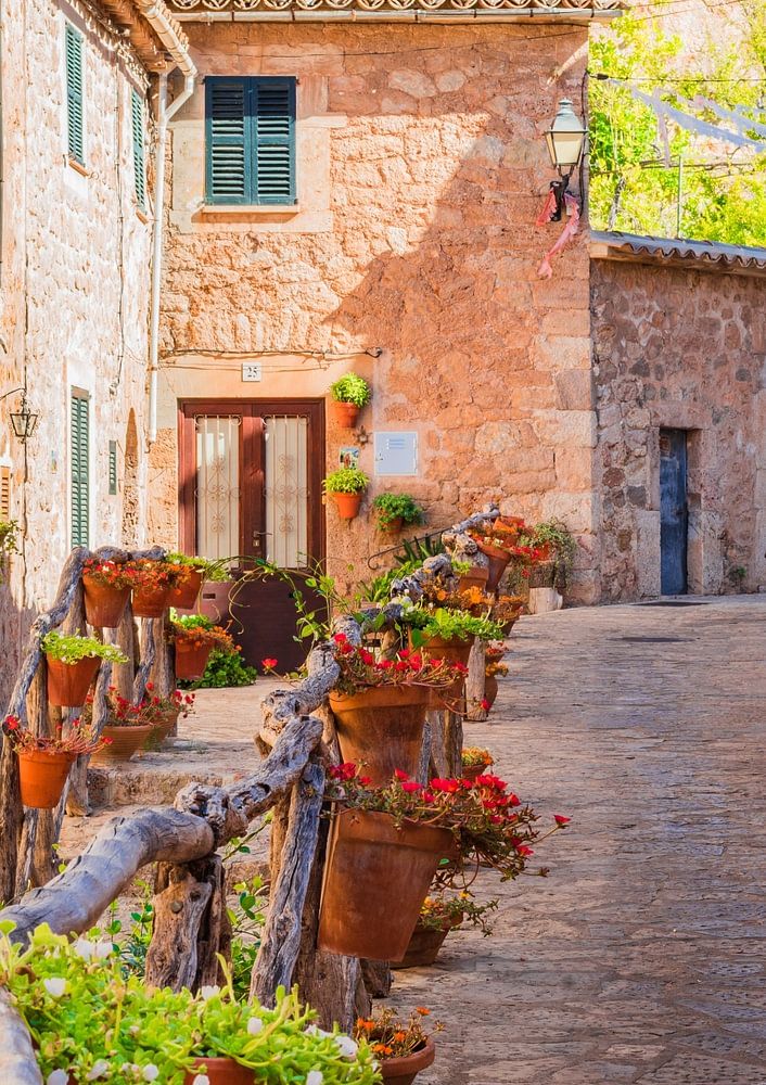 Spanje Mallorca, mooie straat in het mediterrane dorp Valldemossa, Mallorca, Balearen, Balearen, Middellandse Zee, Spanje