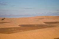 Het avondlicht gaf de duinen van Maspalomas op Gran Canaria een heel speciale tint. De paar kleine figuurtjes geven goed de uitgestrektheid van het gebied weer.