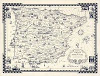 Koop de illustratie Spanje en Portugal, picturaal weergegeven van World Maps op canvas, aluminium dibond, (ingelijste) fotoprint, behang en ArtFrame, op maat geprint in Fine-Art kwaliteit.