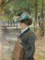 Spannend lezen: Een Midinette (Parijs naai- of ateliermeisje) in Bois de Boulogne, Parijs, Isaac Israels