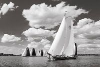 Start van de spannende finale van het IFKS kampioenschap Skûtsjesilen op het IJsselmeer bij Lemmer. Het skûtsje met de H (de Ingelskman) wordt uiteindelijk 2e in het klassement.
