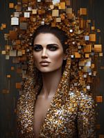 Extravagant expressief portret van een vrouw in bruin en goud tinten