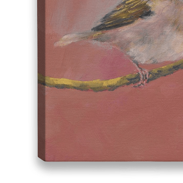 Dit schilderij maakt deel uit van mijn miniserie van drie schilderijen - Sparrow Meetings One, Two en Three. Elk van deze schilderijen toont een vrouwelijke mus zittend op een tak. Elk van deze schilderijen kan op zichzelf worden opgehangen. Maar de drie schilderijen kunnen ook perfect worden gecombineerd tot een drieluik en samen aan de muur worden gehangen voor een gezamenlijke mussenontmoeting.