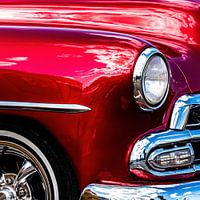 Spatborden Banden Koplampen en Radiatorrooster Oldtimer in Rood in Havana Cuba