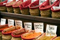 Bij een klein winkeltje in het centrum van Granada, Spanje, staat buiten een uitstalling van heerlijke specerijen, vooral pepersoorten zijn er te koop. Als korrel, gemalen of in een mengsel met andere kruiden. Scherpe peper, zoete peper, gedroogd of gerookt alles is voorradig. De gedachten aan heerlijk eten kwamen vanzelf bij het zien van deze uitstalling.