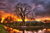 Toen ik uit mijn raam keek zag ik deze spectaculaire zonsondergang die aangevuld werd door onweerswolken. Snel pakte ik mijn camera en ging naar de sloot om de weerspiegeling op het water op te vangen. Een monsterplaat!