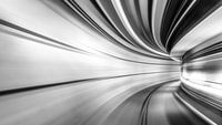 Deze foto heb ik gemaakt in de metro onder de grond in Taipei, Taiwan. Ik kende deze lijn en wist dat dit een onbemand treinstel was. Ideaal dus omdat ik zo mijn camera en statief zo op kon stellen dat ik helemaal voorin tegen het raam kon staan. Zodoende kon ik met een wat langere sluitertijd werken zonder dat de camera beweegt waardoor de foto onscherp zou worden. De snelheid van de metro en de wat langere sluitertijd zorgen ervoor dat er een mooi vloeiend lijnenspel ontstaat, helemaal omdat we hier ook nog eens de bocht om gaan. In eerste instantie had ik deze foto in kleur gemaakt maar na een paar jaar op de kast gelegen te hebben, heb ik toch besloten om hem om te zetten in zwart / wit waardoor de foto nog krachtiger wordt.