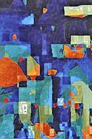 Speels contrast is een modern abstract expressionistisch werk in tinten blauw, oranje en groen. Het is gemaakt zonder AI.