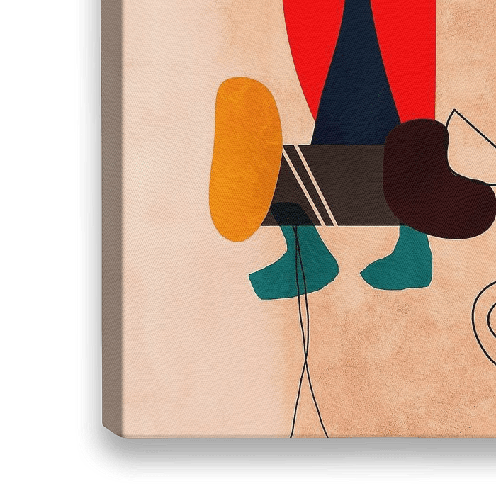 De kleurrijke schilderijen van de beroemde Spaanse schilder en beeldhouwer Joan Miró dienden als inspiratie voor dit abstracte geometrische werk.