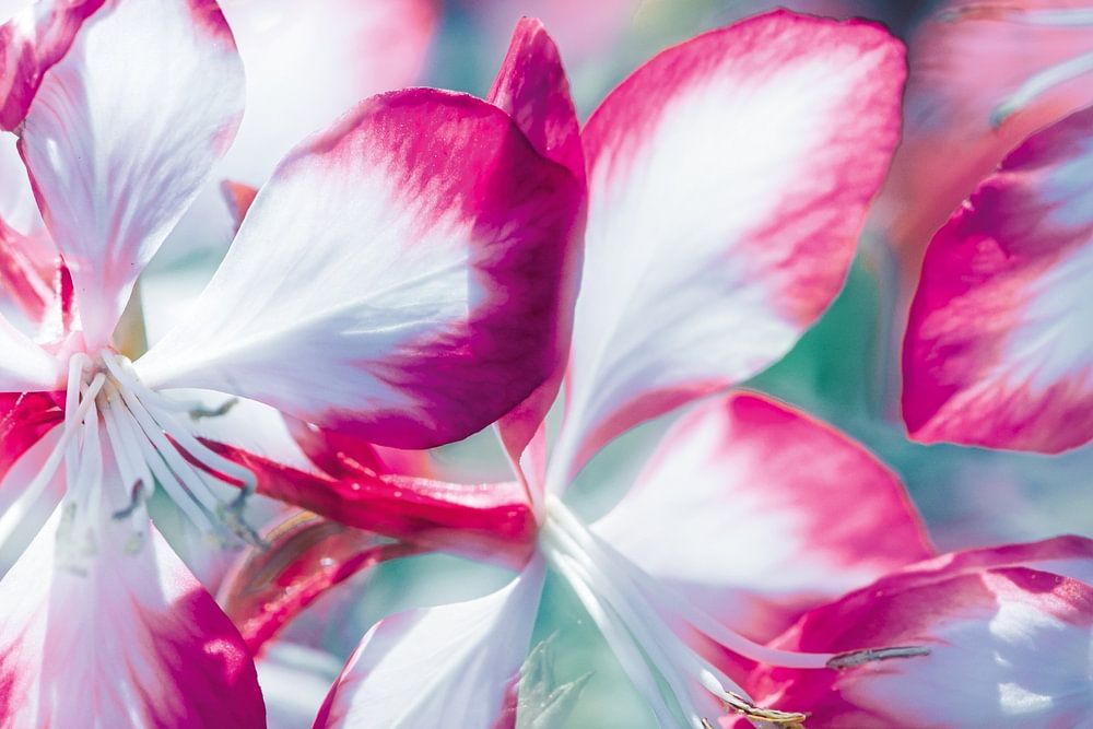 Tweekleurige prachtige kaarsbloesems dansen in de felle zon. De interne meervoudige belichtingstechniek van de camera geeft het beeld meer diepte en een extra artistiek tintje.
