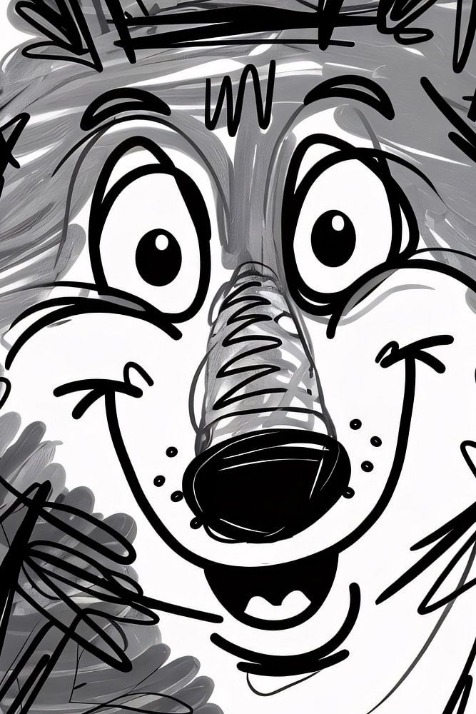 Dit speelse en vrolijke ontwerp toont een wolf in een zwart-wit lijntekening. De expressieve ogen en glimlach van de wolf brengen een gevoel van enthousiasme en plezier over. De achtergrond van het ontwerp bestaat uit een eenvoudig schetsmatig bos, wat de aandacht vooral naar het vrolijke gezicht van de wolf leidt. Deze illustratie zou een geweldige toevoeging zijn aan een modern interieur, vooral in een werkruimte of slaapkamer. De monochrome stijl maakt het makkelijk te combineren met verschillende kleuren en stijlen in een kamer, terwijl de speelse uitstraling een glimlach op je gezicht tovert.