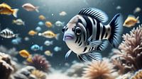 Dit digitale kunstwerk, een visueel feest dat de onderwaterwereld tot leven brengt, zou een verfijnde toevoeging zijn aan elke ruimte die een vleugje natuurlijke sereniteit verlangt. De illustratie toont een keizerlijke engelvis, gedetailleerd met haast menselijke trekken, omringd door een ballet van diverse vissen, die een momentopname…