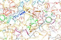 Speeltijd 2. Pionnen van een spel in diverse kleuren. Artistieke afbeelding van pionnen van spellen. Warme tinten. Enigzins abstract.
