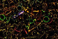 Speeltijd abstracte kunst. Pionnen van een spel in diverse kleuren. Artistieke afbeelding van pionnen van spellen. Warme tinten. abstract, decoratief, kunstig. Heeft een rustgevende werking. Om je woonkamer op te vrolijken en toch rust te behouden zal deze print goed volstaan.