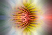 Digitale bewerking van uitwaaierende lichtstralen in geel en oranje accenten. Mooie symmetrie toegepast.