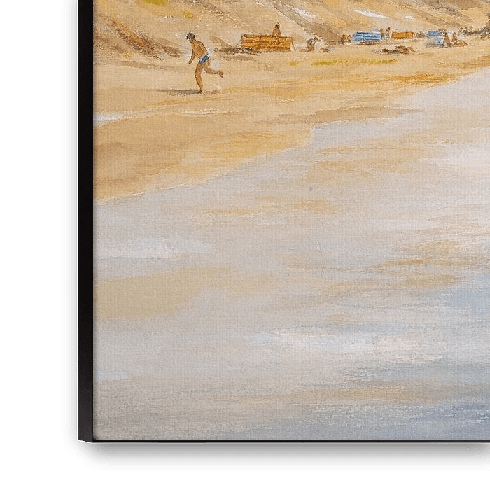 Alhoewel de afbeelding fictief is stelt het een typisch strand tafereel voor zoals je dat kan vinden langs de stranden van Noord-Holland. Hans woonde jarenlang langs deze kust en liet zich graag inspireren door het strand en het water van de Noordzee.