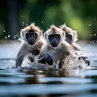 Deze grappige, fantasierijke afbeelding tovert een glimlach op je gezicht. Dieren in bad zijn realistisch afgebeeld.
