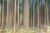 Landschap in het Speulderbos in Garderen, Gelderland. Hier is gebruik gemaakt van meervoudige belichting, waar een standaard foto is gemaakt van de stammen van de dennenbomen, gecombineerd met een ICM, ofwel intentional camera movement. Dit maakt het geheel abstract en dynamisch.