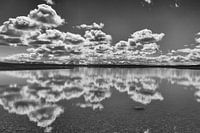 Het IJslandse binnen gespiegeld in een laag water. In het binnenland van IJsland sta je altijd voor verrassingen te staan zoals deze weerspiegeling.