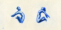 Schilderij van twee dansers die springen in de lucht. Ik vind het mooi om de symboliek van lichaamstaal in beeld te brengen en doe dat graag met mensen die ik op een abstracte manier schilder. Het schilderij heeft een open karakter en geeft je alle ruimte voor je eigen interpretatie.