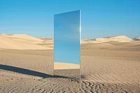 Een glinsterende, rechthoekige spiegel rijst op in een eindeloos woestijnlandschap en weerspiegelt het glinsterende licht van de lucht en het zachte zand. Het heldere, onverstoorde oppervlak contrasteert met de zacht golvende duinen en creëert een betoverende illusie van oneindigheid en verandering. Een moment van verwondering in de…