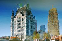 Het Witte Huis, opgeleverd in 1898 was ooit het hoogste kantoorgebouw van Europa. De geelbruine woontoren ernaast, Wijnhaeve genaamd, is van veel recenter datum: 2009. Op deze foto is, als in een impressionistisch schilderij, het spiegelbeeld vastgelegd van beide gebouwen, en van een aantal historische binnenvaartschepen in de Oude Haven.