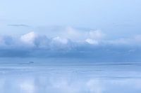 Het wad boven Groningen weerspiegeld hier prachtig. Het water zakt langzaam weg waardoor er voor de vogels weer lekker wat te eten valt.