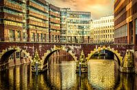 Koop de foto Spiegeling Ellernstorsbrücke in de Herrengrabenfleet in Hamburg van Dieter Walther op canvas, aluminium dibond, (ingelijste) fotoprint, behang en ArtFrame, op maat geprint in Fine-Art kwaliteit.