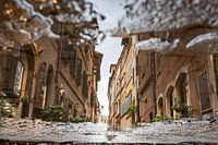 Koop de foto Spiegeling van een steegje. van Karsten Rahn op canvas, aluminium dibond, (ingelijste) fotoprint, behang en ArtFrame, op maat geprint in Fine-Art kwaliteit.