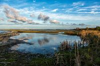Spiegeling aan het IJsselmeer op een heldere avond in het voorjaar in de buurt van Medemblik
