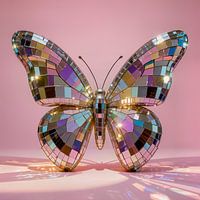Voor dit werk heb ik een vlinder ontworpen die volledig lijkt opgebouwd uit kleine spiegeltegels, zoals bij een discobal. Met de vleugels volledig open en perfect symmetrisch ontstaat een subtiel spel van licht en reflecties.