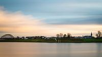 Spiegelwaal (voorheen de Nevengeul), eiland Voorlent, links de Waalbrug, rechts de Stevenskerk, in het midden de overblijfselen van fort Knotsenburg. Opname van vier minuten.