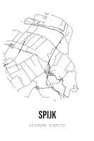 Zwart-witte landkaart, stratenplan of plattegrond van Spijk. Spijk is gelegen in de gemeente Delfzijl, provincie Groningen. Op de stadskaart zijn alle openbare wegen in Spijk opgenomen. Verder is de kaart voorzien van de coördinaten van het centrum van Spijk.