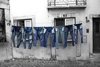 Koop dit digital art kunstwerk Spijkerbroeken aan de lijn van Danielle van Leeuwaarden als reproductie op canvas, aluminium dibond, (ingelijste) fotoprint, behang en ArtFrame, op maat geprint in Fine-Art kwaliteit.