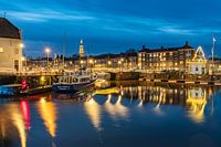 Middelburg in het blauw uurtje vanaf de buitenhaven.