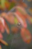 Ik heb hier scherpgesteld op de spin, zodat je oog daar ok direct naar toegetrokken wordt. Daarnaast zie je de zachte overgang naar het web en vervolgens de bladeren.