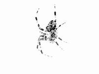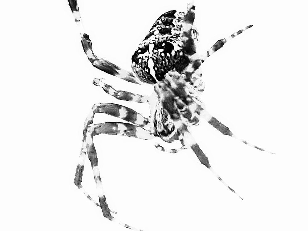 Een spin in zijn web gemaakt tot een zwart wit foto waarop de spin nog beter tot zijn recht komt