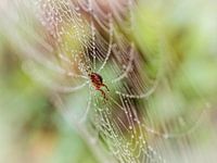 Een spin het centrum van een met dauw bedekt spinnenweb.