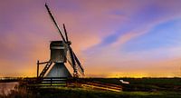 Deze foto is gemaakt toen het bijna donker was, de lucht kleurt prachtig magenta bij een sluitertijd van 120 seconden. Deze spinnekop molen staat in de skrinser polder bij Easterlittens. Ik heb de molen uitgelicht door middel van mijn flitser..