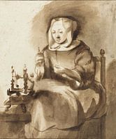 Spinnende vrouw, Gerbrand van den Eeckhout, 1653 - 1657 uit de oude meesters collectie