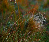De waterdruppels van het spinnenweb en ook de anderen waterdruppels komen mooi naar voren.